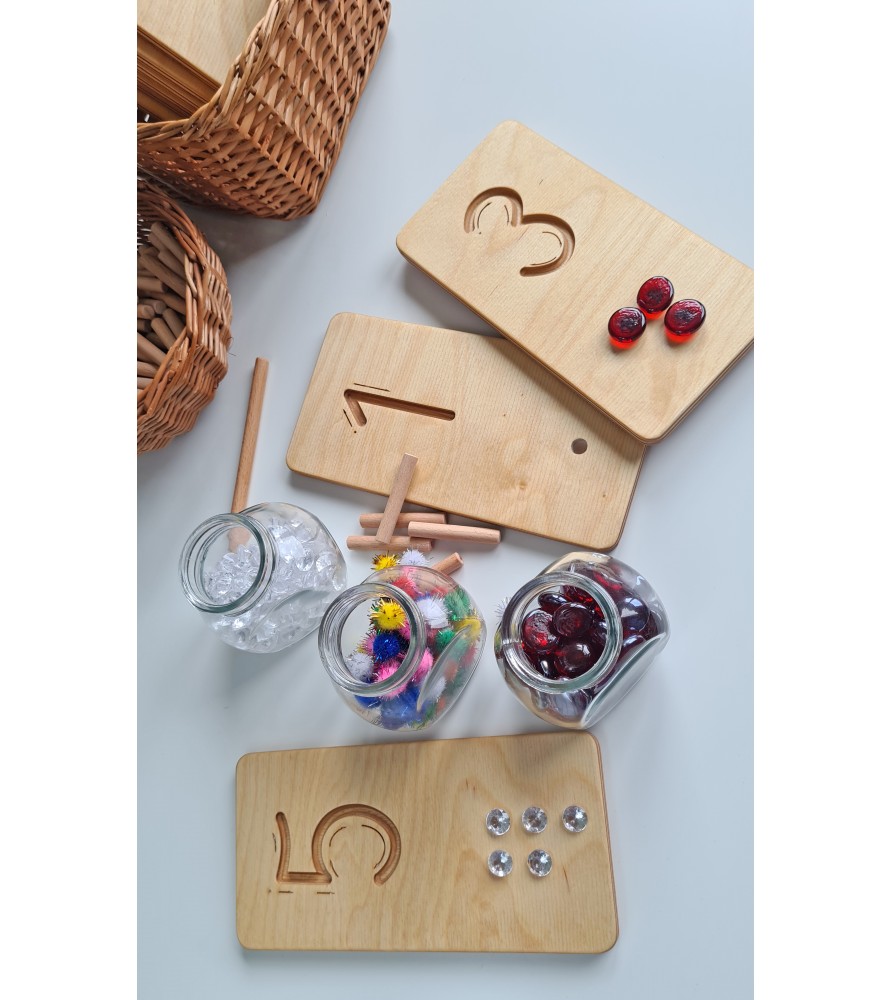 Wczesnomatematyczna pomoc, która wspomaga rozwój manualny i umiejętność liczenia. Wspiera koncentrację, rozwój chwytu pęsetowego,