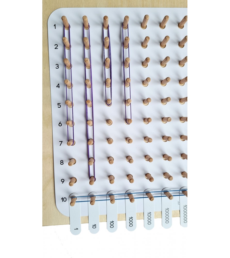 Etykietki w połączeniu z geoplanem i gumkami spełniają doskonale rolę liczydła montessoriańskiego: