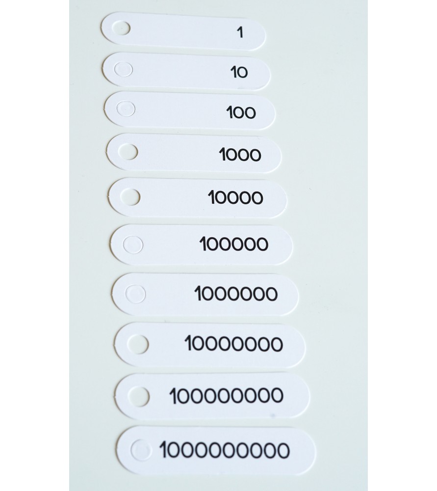 Zestaw dziesięciu etykietek- liczenie do miliarda