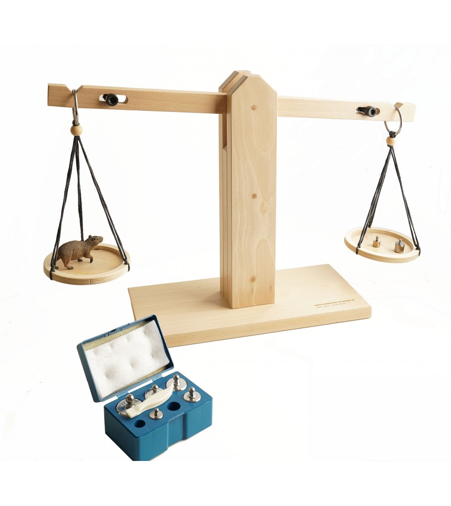 Wykonana z pełnego drewna bukowego, masywna i solidna- klasyczna waga szalkowa świetna do zabawy i nauki.