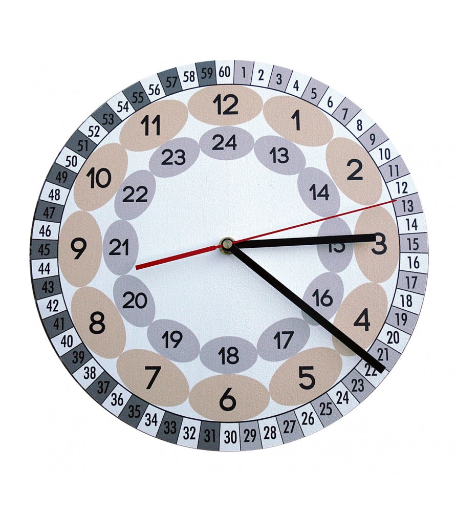 Niezwykle logiczny i uporządkowany układ wspomaga dziecko w nauce odczytywania czasu. Jest na nim dokładnie wszystko, co być powinno i nic poza tym.