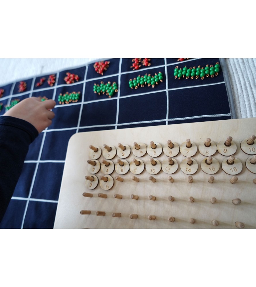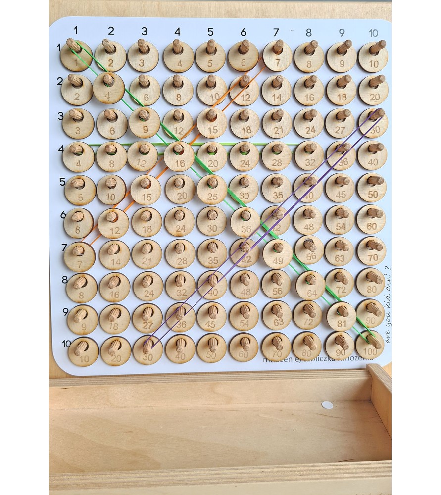 Tagi: zawieszki "Mnożenie", literki na geoplan, tabliczka mnożenia, tablica Pitagorasa, matematyka, ded, domowa edukacja, pomoce drewniane, montessori